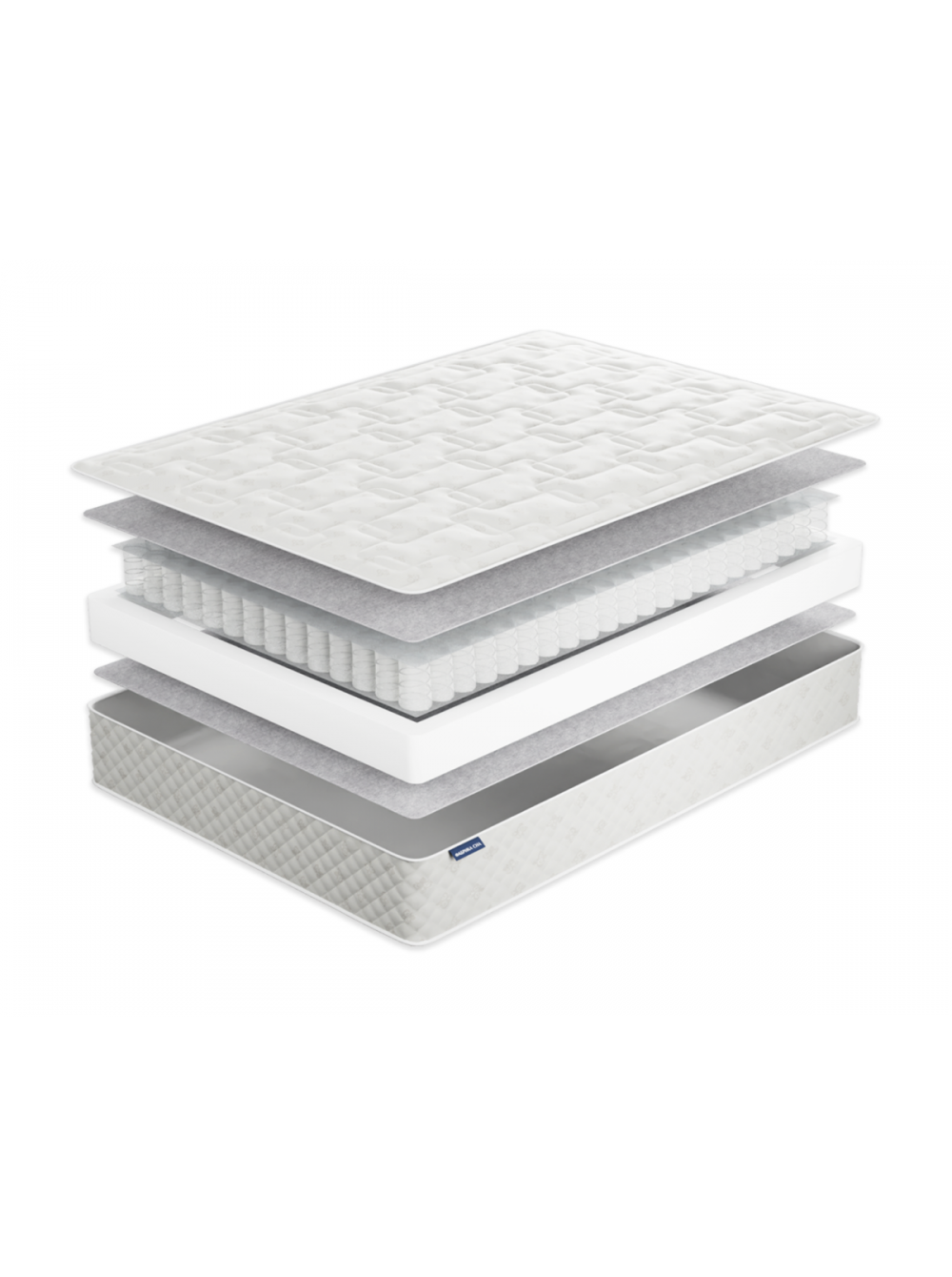 1.Жаккардовый чехол  Чехол выполнен из прочной, износостойкой ткани жаккард люкс, простеганной на объемном холконе в сочетании с пеной Memori Foam. Благодаря чему в матрасе создается дополнительный анатомический слой, продлевается срок эксплуатации, изделие приобретает неповторимый внешний вид. 3D сетка по периметру матраса обеспечивает хорошую вентилируемость и сохраняет оптимальный микроклимат во время сна.